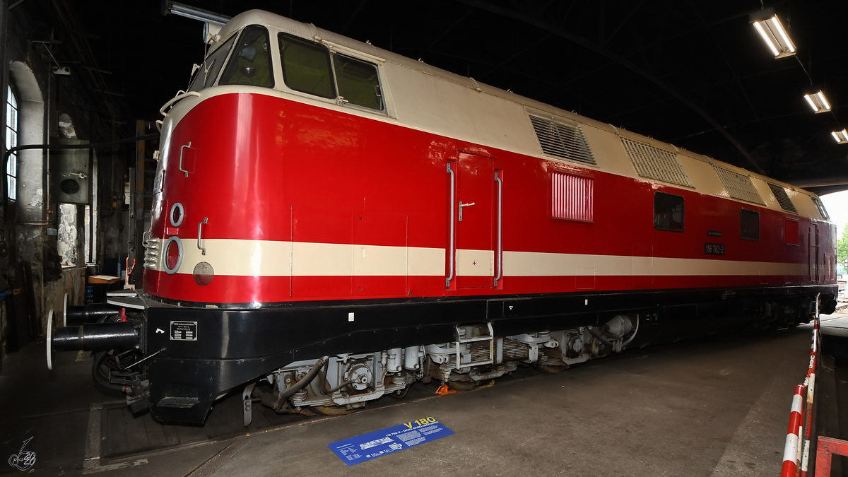 228 782-9 (118 782-2 | DR V 180 382) des Sächsischen Eisenbahnmuseum Chemnitz-Hilbersdorf e.V. (SEM) steht anlässlich des 28. Heizhausfests im SEM.