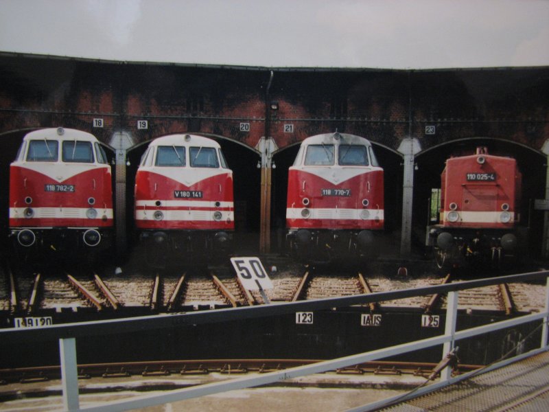 Rechts daneben rangiert 228 585-6 (118 552-9 | DR V 180 052) der ITL Eisenbahngesellschaft mbH (ITL), zur Vorbereitung der Lokparade, in Richtung des östlichen Ringlokschuppens.
