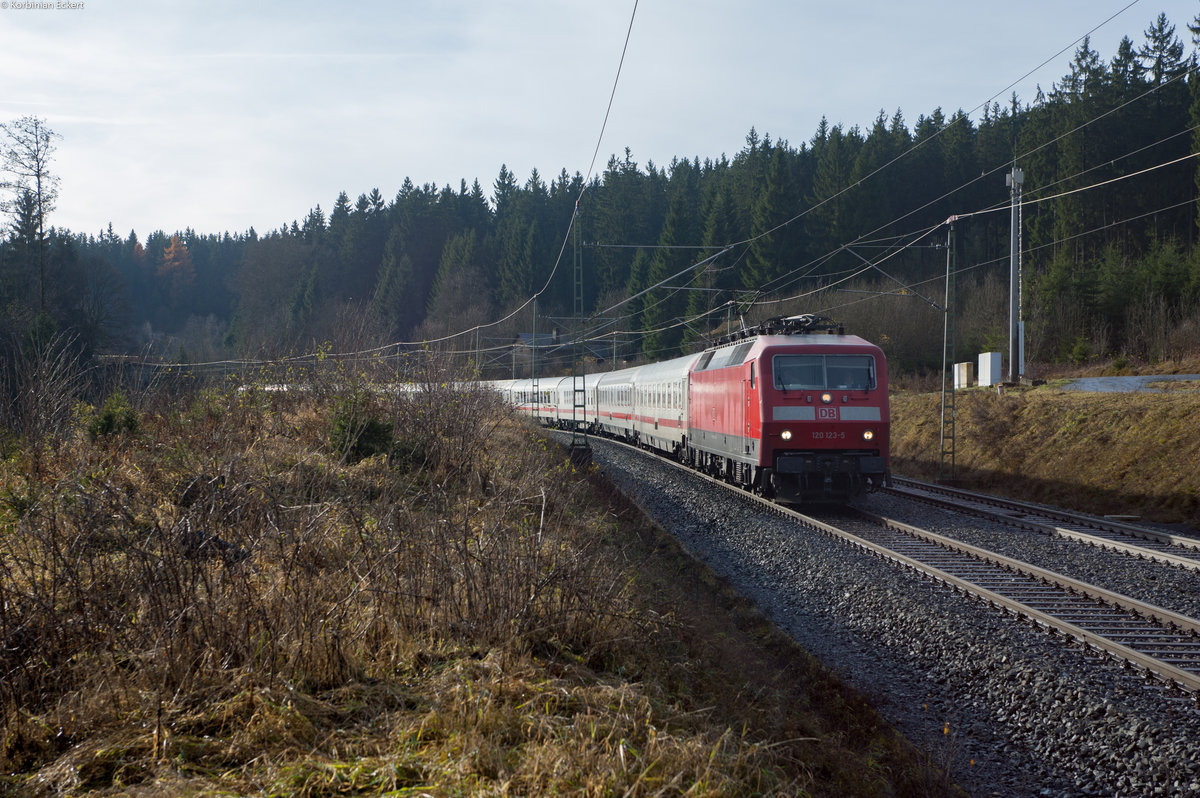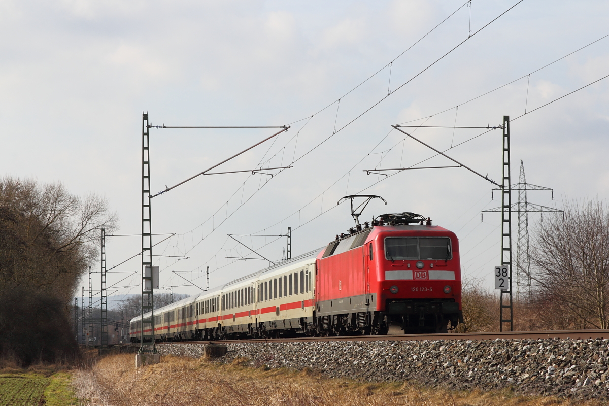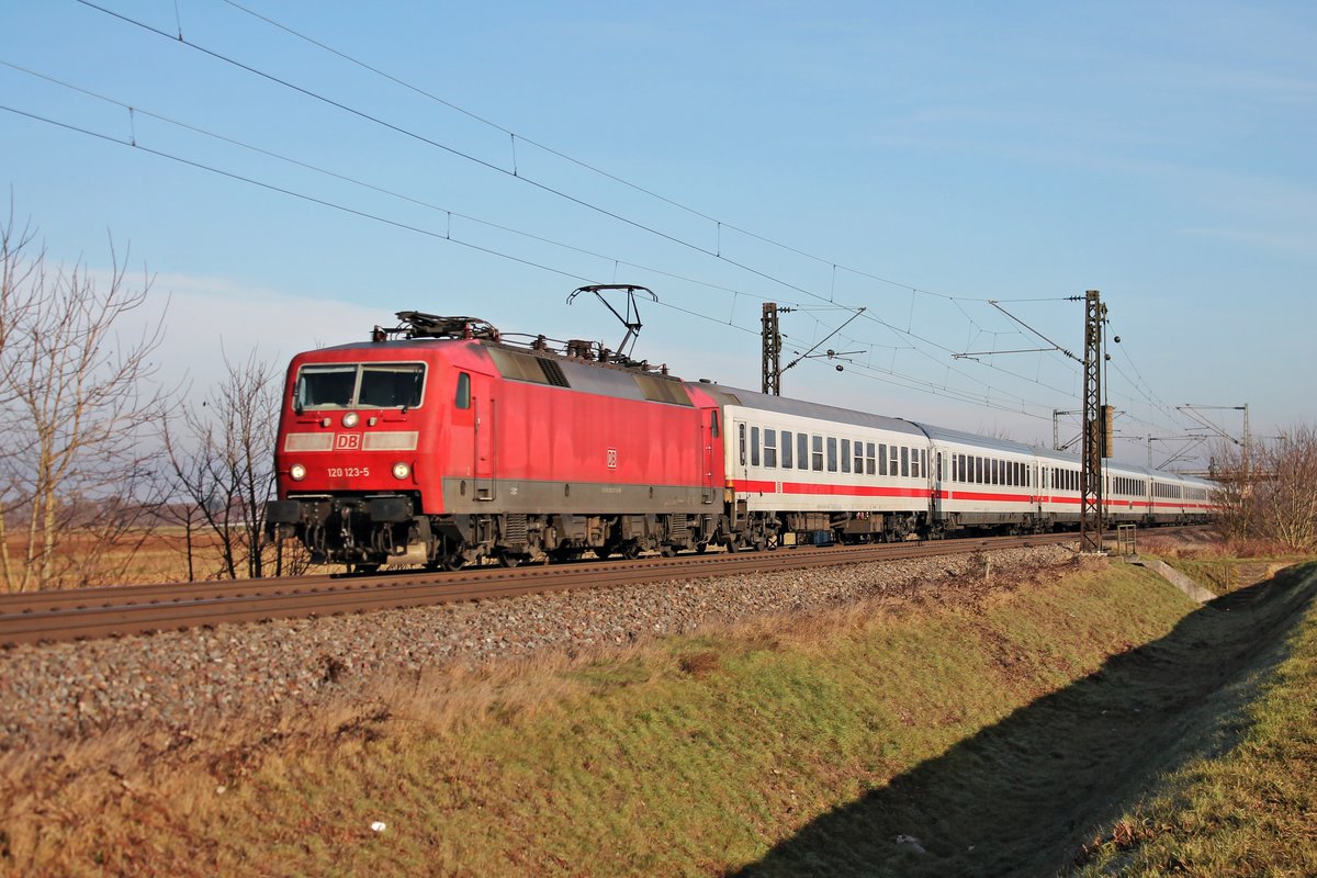 Am Morgen des 22.12.2016 bespannte die 120 123-5 einen Leerreisezug nach Basel Bad Bf, als sie bei Hügelheim auf der KBS 703 nur noch wenige Kilometer bis in die Schweiz vor sich hatte. Tobias Schmidt