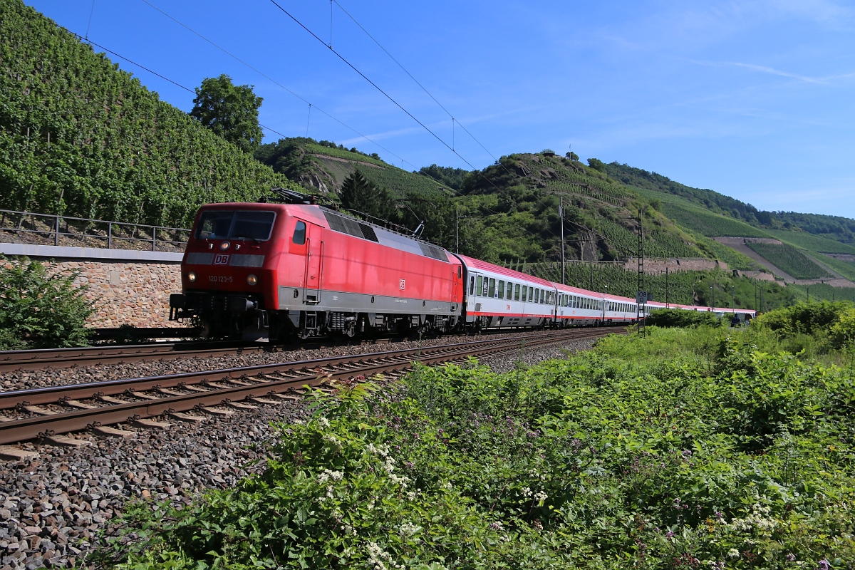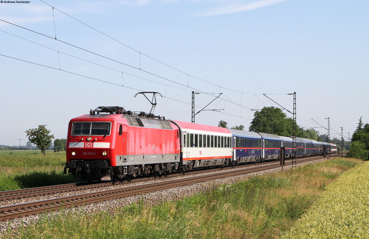 120 123-5 und am Zugende 120 111-0 durchfahren am 05.05.2017 mit dem IC 2304 (München Hbf - Berlin Hbf (tief) die Ortslage von Etzelbach. Matthias Hartmann