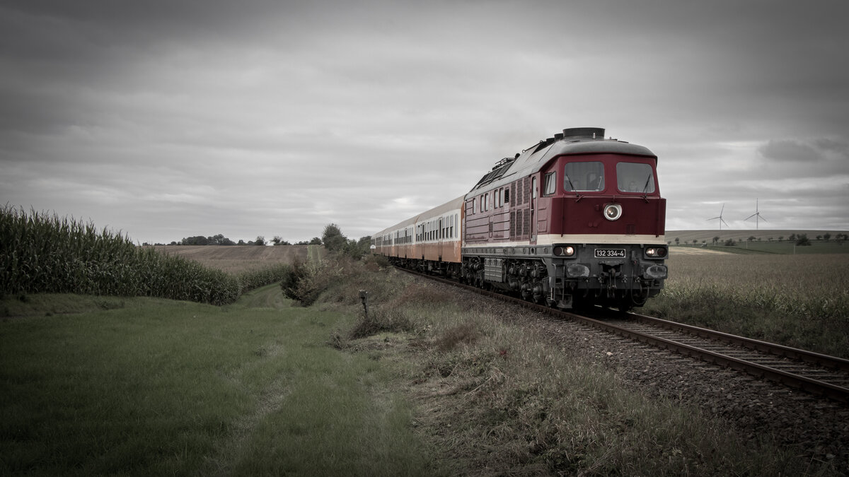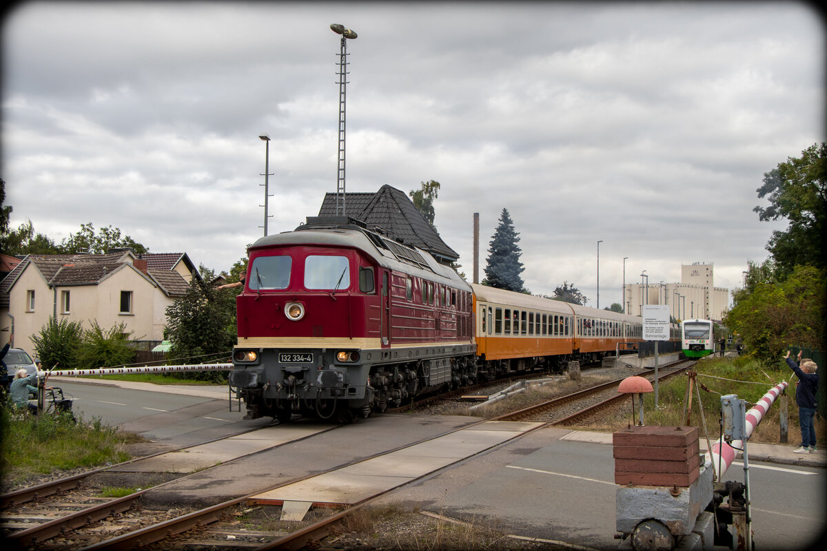 Nachdem 132 334-4 ihren Kesselwagenzug in Großkorbetha abgestellt hat ging es wieder Lz in Richtung Weißenfels.