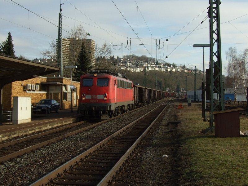 139 561-5 mit einem Ganzzug bei der Durchfahrt von Vallendar/Rhein.28.2.09