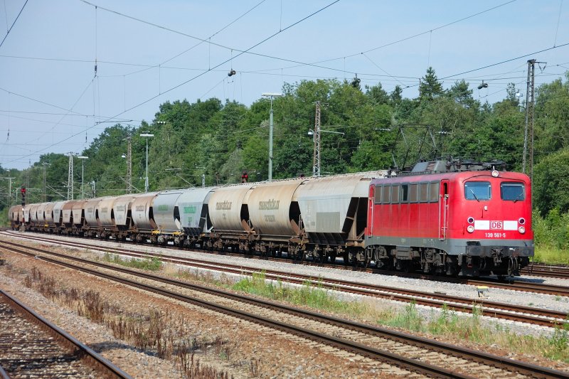139 561-5 schleppt einen Getreide-Ganzzug durch Neuoffingen Richtung Ulm. (KBS 980, 11.07.2008)