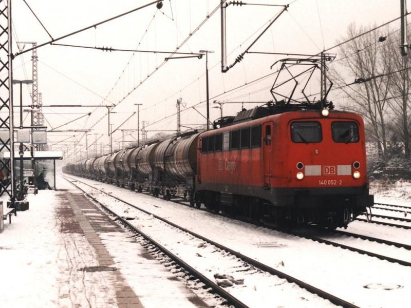 Begegnung der V100-Lok D25 der Bentheimer Eisenbahn AG und 140 052-2 auf Bahnhof Bad Bentheim am 28-12-2000. Bild und scan: Date Jan de Vries. Date Jan de Vries