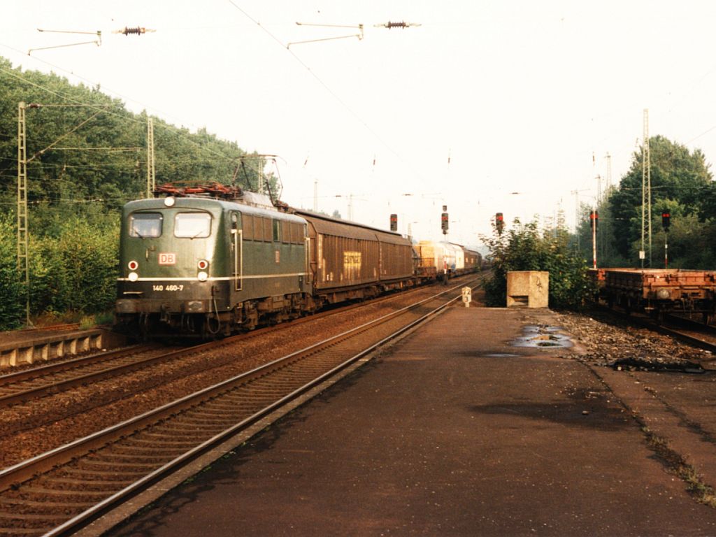 140 460-7 mit einem Güterzug in die Richtung Krefeld auf Bahnhof Viersen am 26-8-1997. Bild und scan: Date Jan de Vries.