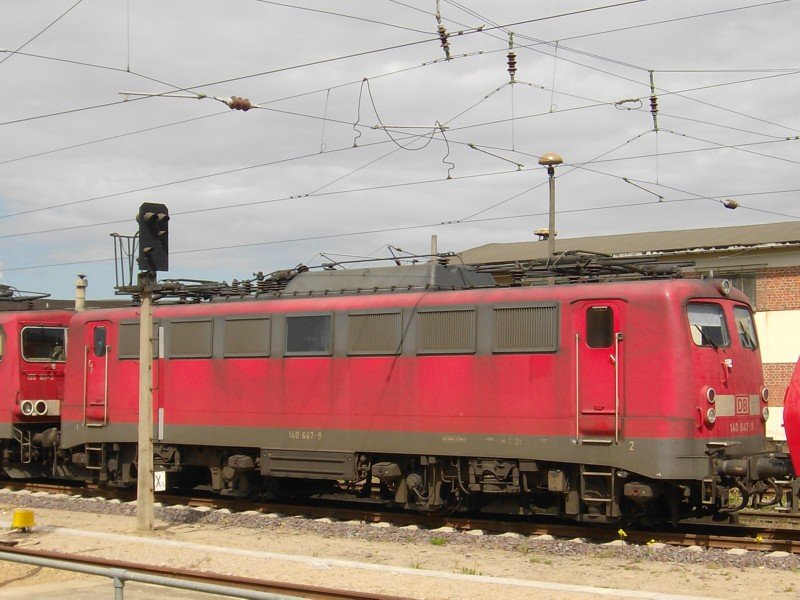Im Bahnhof von Wismar abgestellt. Die 140 647-9.