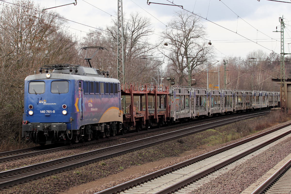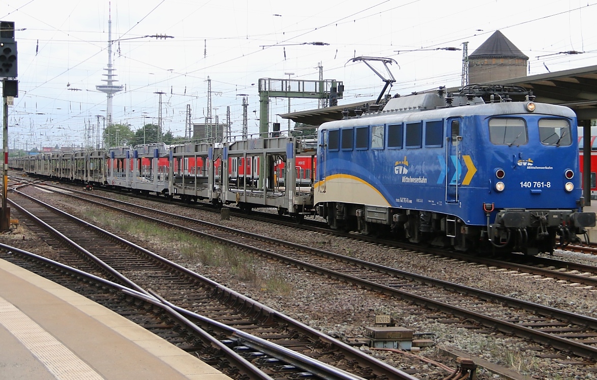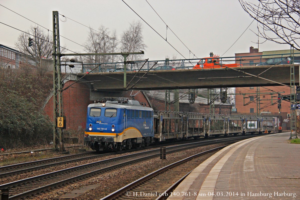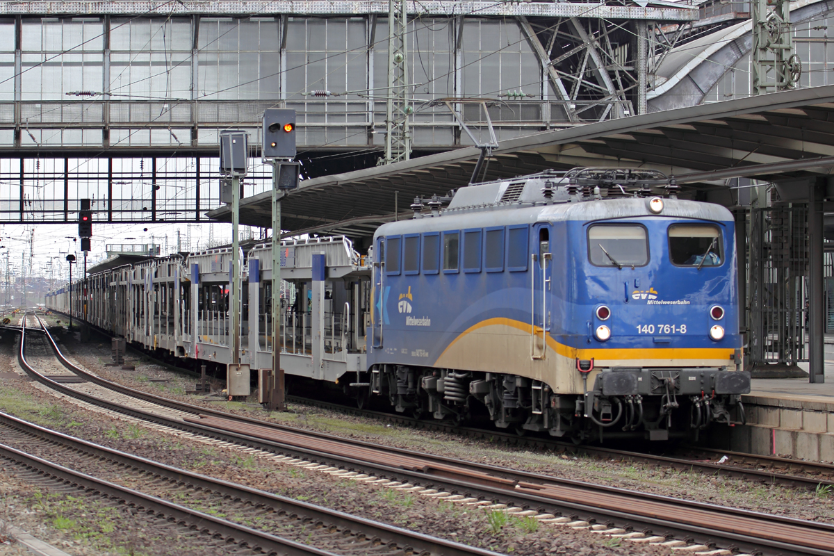 140 761-8 der EVB/MWB mit leerem Autotransportzug aus Richtung Norden kommend. Aufgenommen am 19.06.2014 im Bremer Hauptbahnhof.