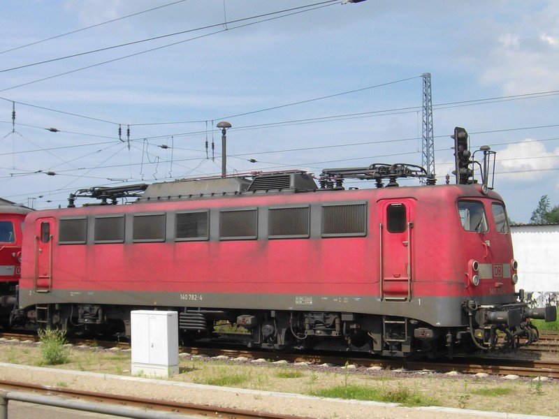 140 782-4 wartete am 24.06.07 im Bahnhof von Wismar auf neue Aufgaben. Städte auf Kaposo