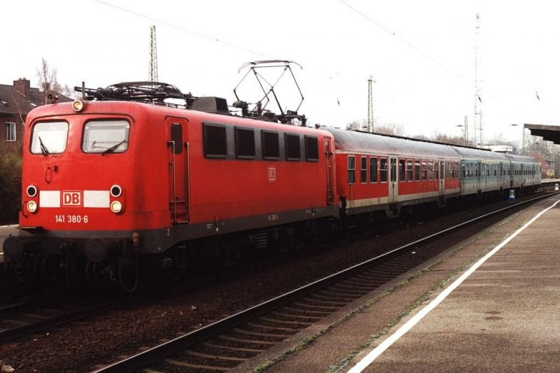 141 380-6 mit RB 33 Rhein-Niersbahn 96899 Wesel-Mönchengladbach auf Bahnhof Wesel am 01-04-2000. Bild und scan: Date Jan de Vries.