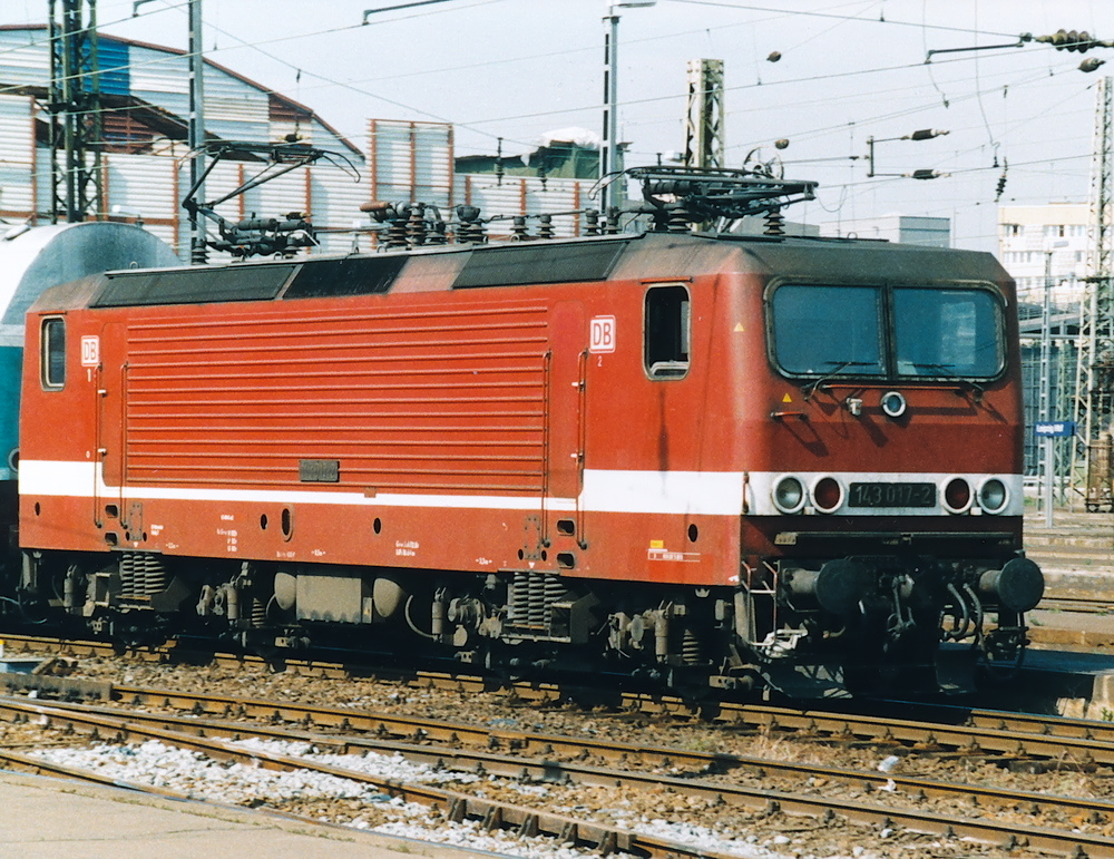 143 017-2 ( 91 80 6143 017-2 D-DB ), ex Fahrzeugnummer: 243 017-1, VEB Lokomotivbau Elektrotechnische Werke -Hans Beimler-, Hennigsdorf (LEW) No. 18240, Baujahr 1984, Eigentümer: DB Regio AG - Region Baden-Württemberg, Fahrzeugnutzer: Regionalverkehr Württemberg, [D]-Stuttgart, Bh Stuttgart, Erst-Bw Dresden,