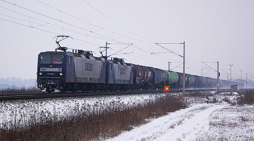 143 063-6 RBH 107 und 143 950-4 RBH 122 bei Redwitz am 13.12.2013.