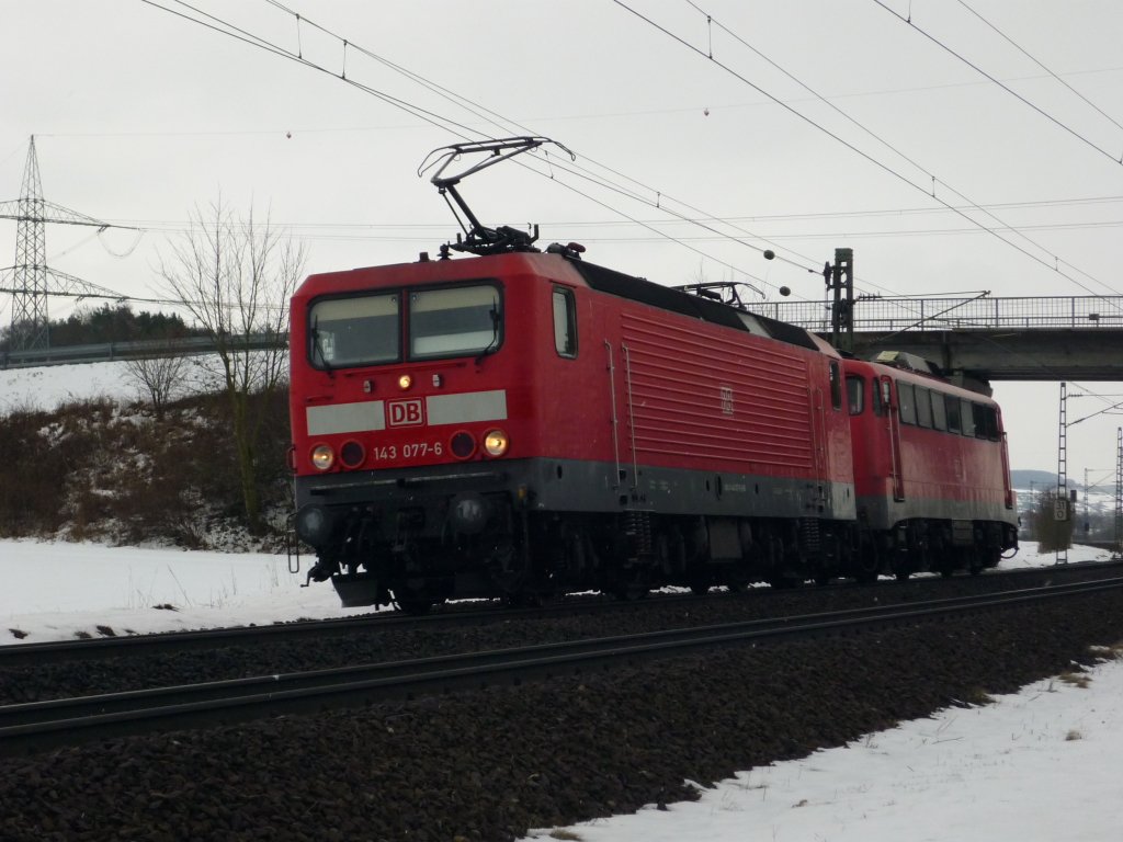143 077-6 & 110 411 zwischen Gemünden (Main) und Karlstadt (Main), am 03.02.2010