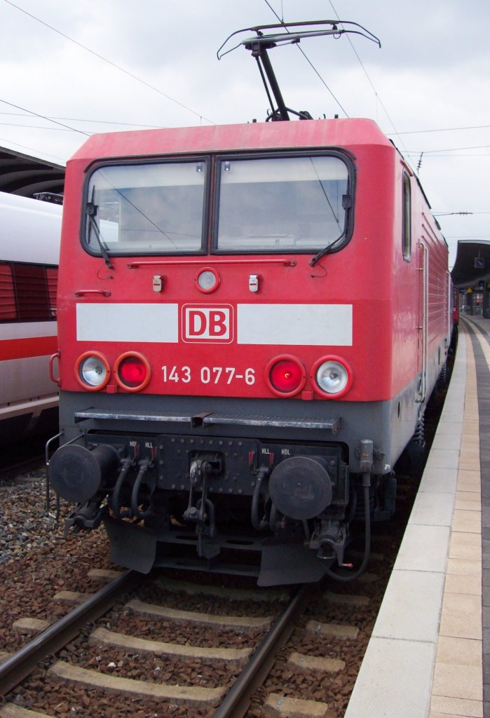 RB 143 077-6 im Bahnhof Lichtenfels kurz vor der Abfahrt nach Bamberg.