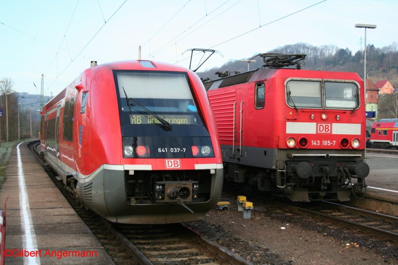 Defekte 143 185-7 des RB 16322 Richtung Eisenach steht auf Bahnsteig 2 im Bhf Leißling während ein ICE am Bahnsteig 1 ( entgegengesetzte Richtung ,da durch die defekte 143 die Strecke Weißenfels-Naumburg nur eingleisig befahren werden kann)an den wartenden Passagiere des RB vorbeifährt.Passagiere des RB wurden gebeten,trotz starkem Schneefall, auf dem Gegengleis auf den Ersatzzug zu warten.29.11.2010 Mario Schneider