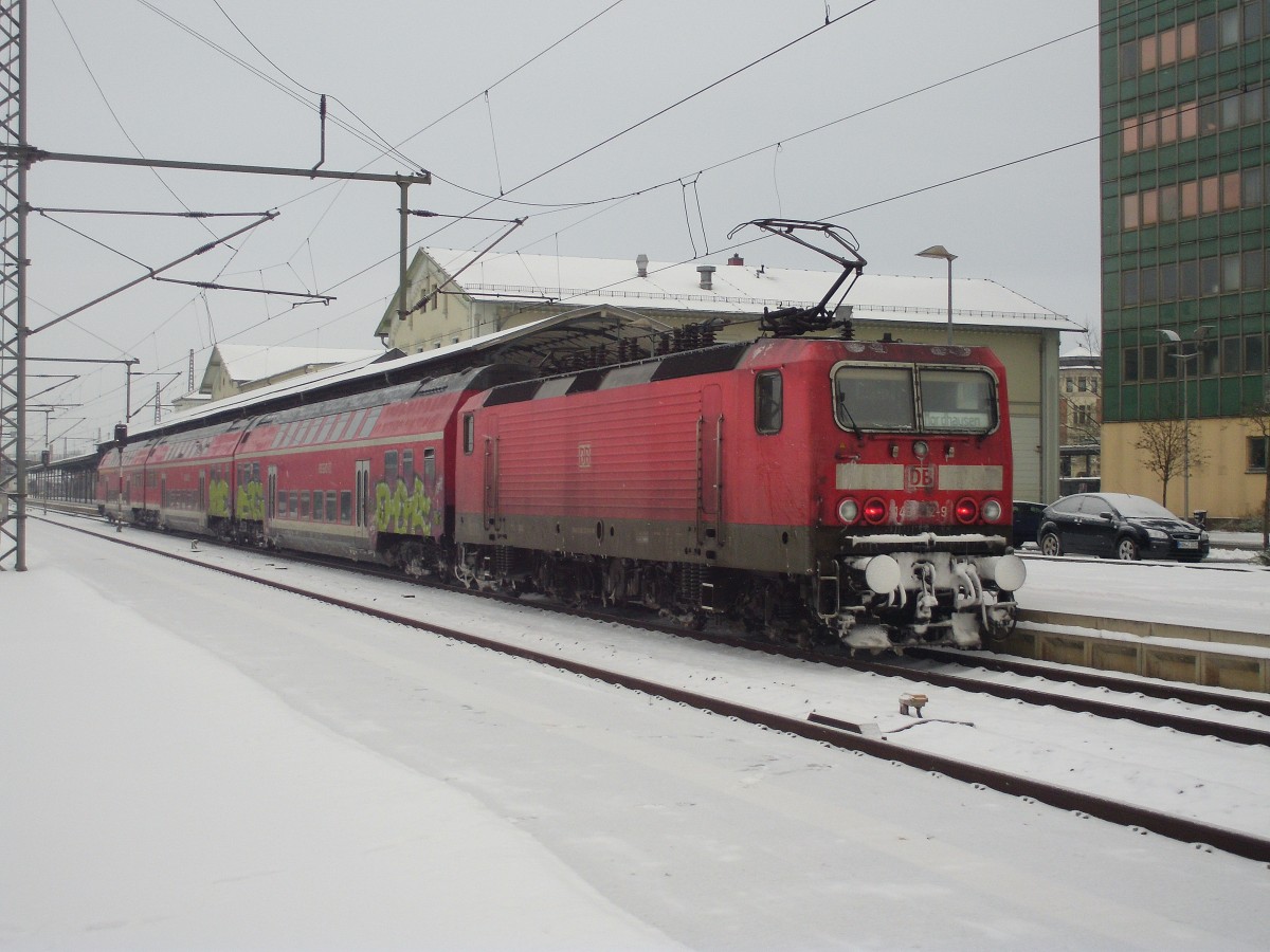 143 212-9 erreicht mit ihren RE aus Halle(Saale) den Bf Nordhausen am 30.12.14