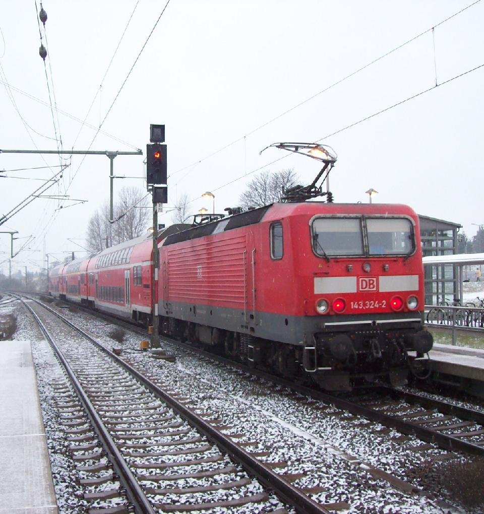 143 324-2 in Schkeuditz mit ihrer S-bahn Leipzig - Halle in Richtung Halle 31.12.2009 Dieter Berger