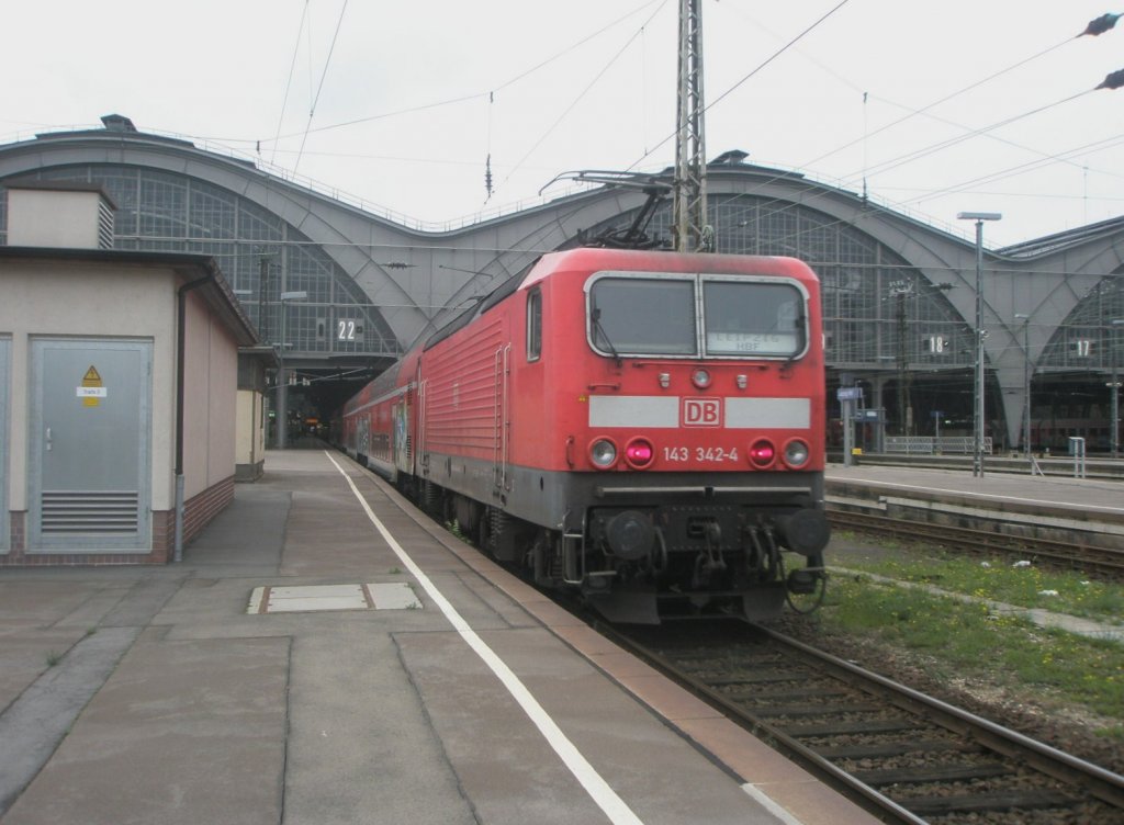 Hier 143 342-4 mit einem RE50 nach Leipzig Hbf, bei der Einfahrt am 28.10.2009 in Leipzig Hbf.