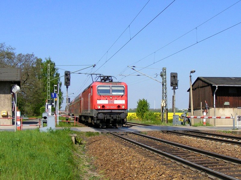 143 342-4 hält in Kürze mit ihrer RB von Zwickau nach Freiberg in Grüna bei Chemnitz. (16.06.2012)