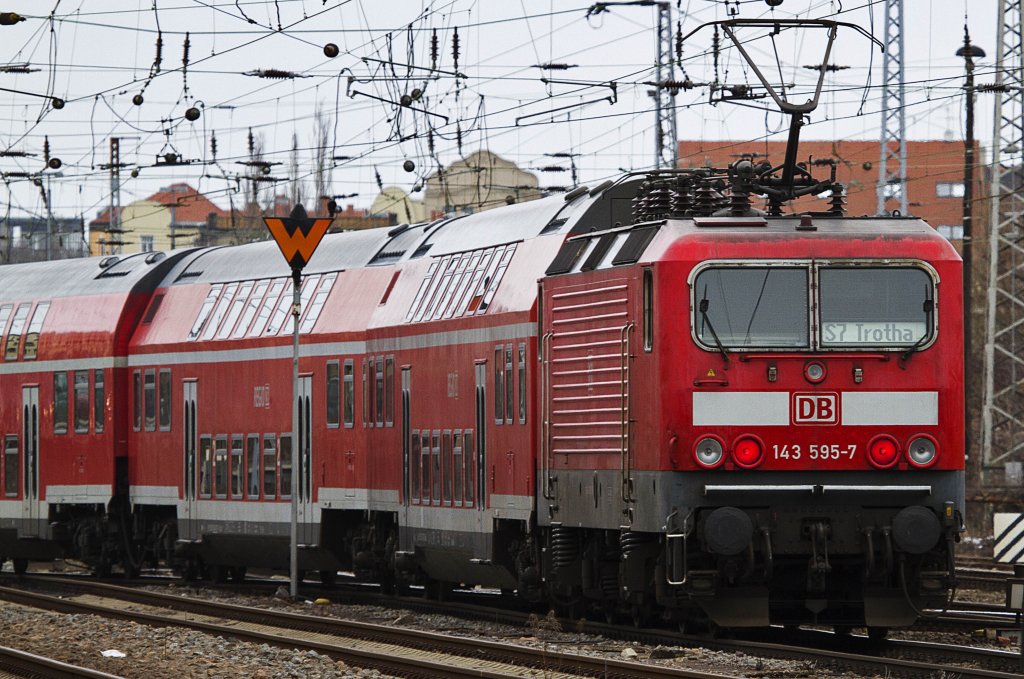 143 595-7 am 01.03.2013 in Halle/Saale, nähe Hauptbahnhof als S7 nach Trotha