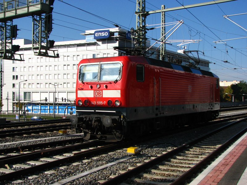 143 595-7 kam aus dem Bw und ist auf dem Weg zu ihren Zug.12.10.08