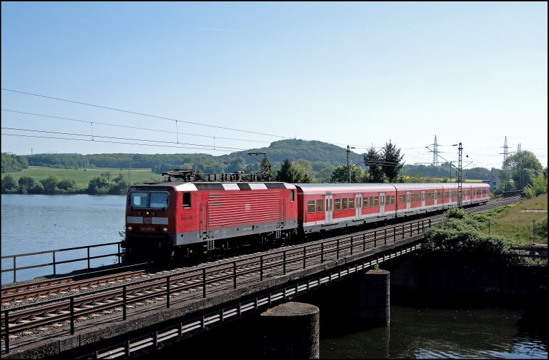 143 617 (9180 6 143 617-9 D-DB) überquert mit einem Zug der Linie S5 nach Dortmund Hbf den Harkortsee bei Wetter(Ruhr). (12.05.2008)