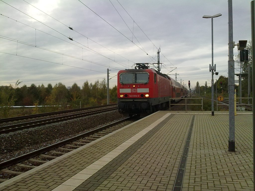 Die BR 143 654-2 als S1 Richtung Schöna erreicht gleich den Bahnhof Dresden-Reick.