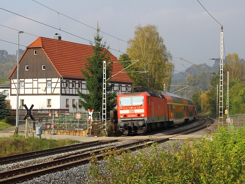Die Br 143 654-2 als S1 erreicht gleich den Bahnhof Königstein.