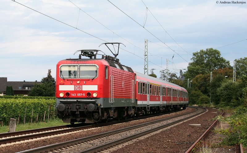 143 657-5 und 644-3 mit der RB 15418Frankfurt(Main)Hbf-Koblenz Hbf) und 143 580-9 mit der RB 15535 (Assmannshausen-Wiesbaden Hbf) in Geisenheim Andreas Hackenjos