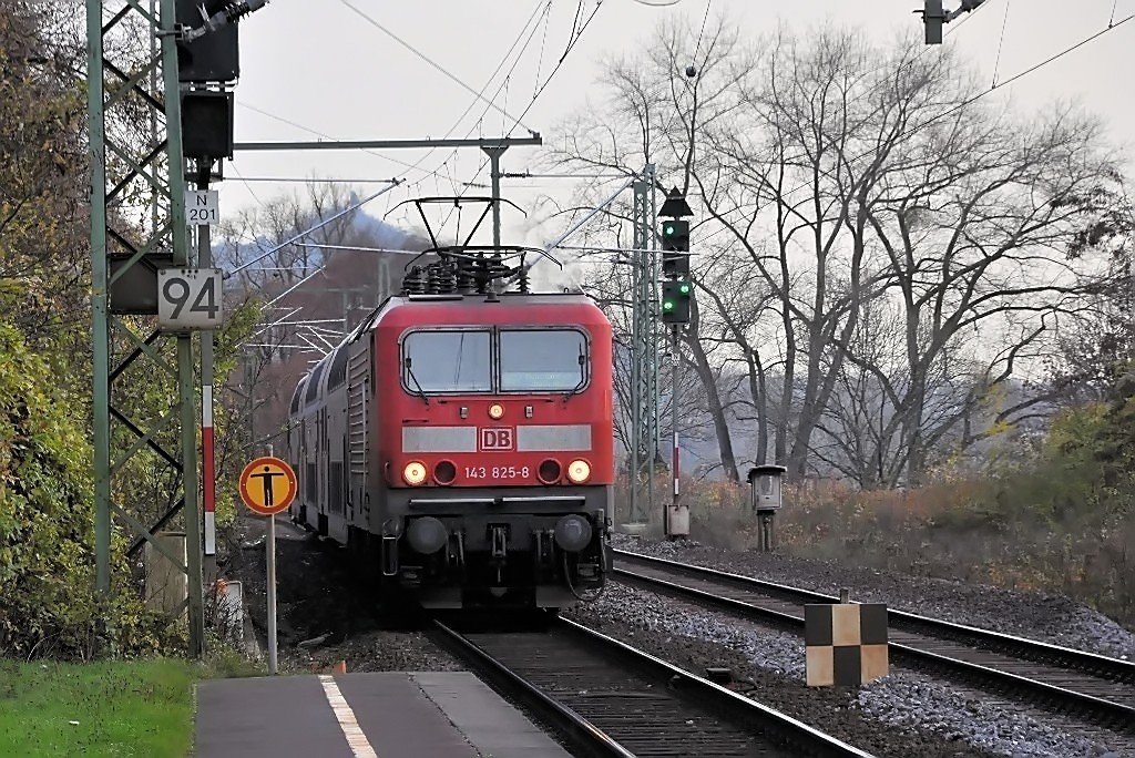 143 825-8 REGIO bei der Einfahrt in den Bahnhof Bonn-Oberkassel. 20.11.2009