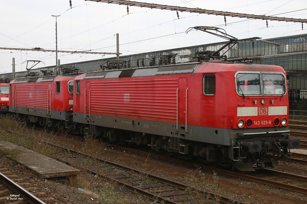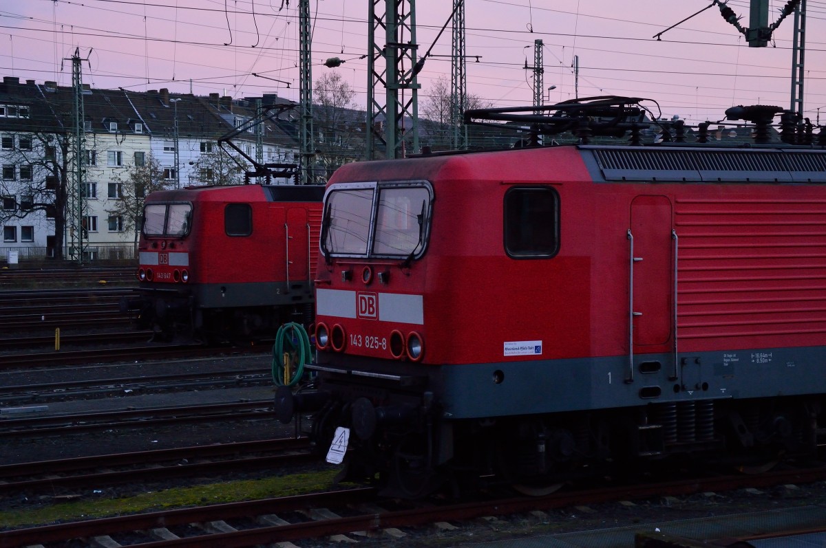 In der Abstellgruppe des Koblenzer Hbf ist dieses Doppelkopfbild der beiden 143 647(hinten) und der 143 825-8 entstanden am Abend des 2.Februar 2014