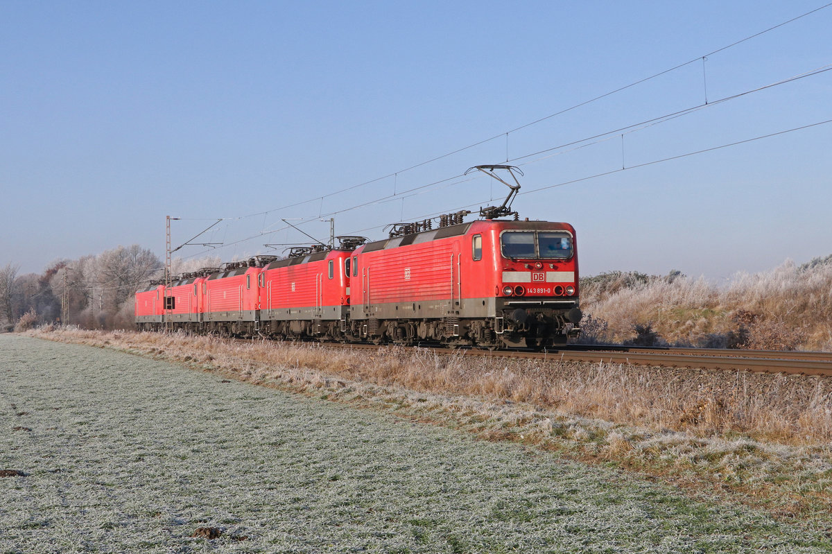 Am 29.11.2016 fuhren Richtung Seelze: 143 891-0, 143 934-5, 143 952-0, 143 926-4 & 143 825-8 Aufnahmeort: Zwischen Baden(Achim) und Etelsen im Landkreis Verden