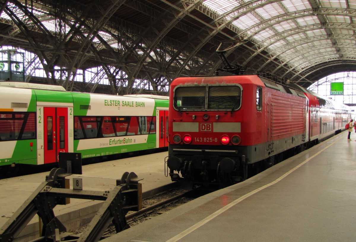 DB 143 825-8 mit dem RE 17690 nach Magdeburg Hbf, am 08.09.2015 in Leipzig Hbf.