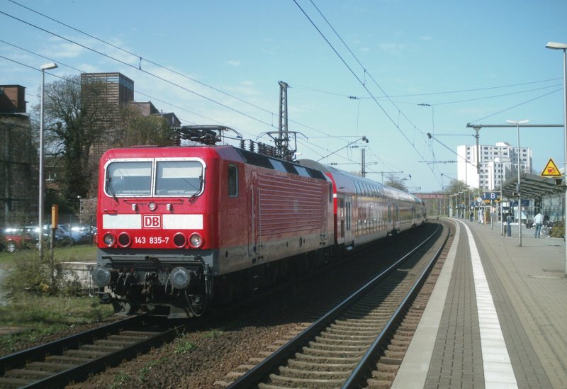 143 835-7 am 22.04.2008 vor Regionalexpress Rheine-Braunschweig Diese Relation ist sonst nur BR 111 und 146.1 vorbehalten