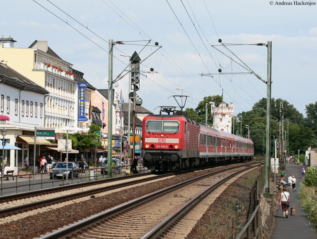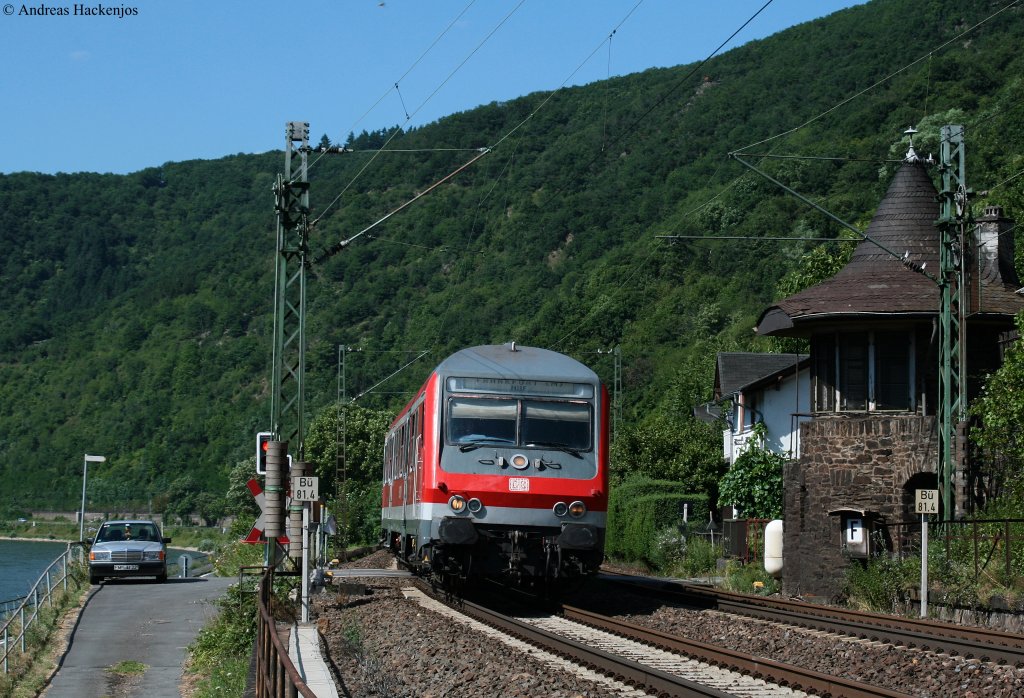 RB 39231 (Koblenz Hbf-Frankfurt(Main)Hbf) mit Schublok 143 906-6 bei Kaub 18.7.10