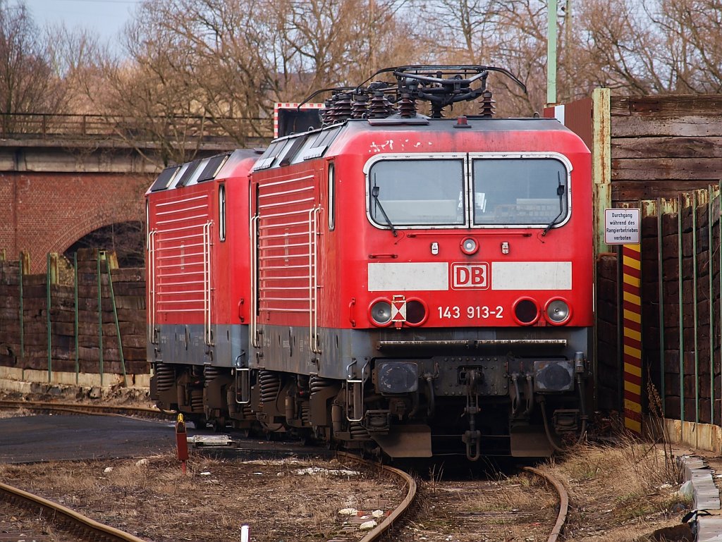Jetzt sind die 143er an der Reihe. Bei Theo Steil in Eschweiler steht 143 913-2 und dahinter 143 579-1, der man schon die Stromabnehmer abgebaut hat und warten auf ihre Verschrottung. Auf einem Gleis tiefer im Firmengelände standen noch drei weitere 143er, die wohl das gleiche Schicksal erleiden müssen. Aufgenommen am 06.02.2011 durch das Firmentor von der Phönixstrasse.