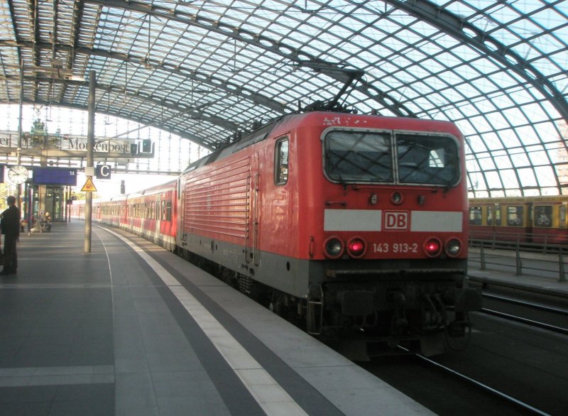 Hier 143 913-2 mit einem S-Bahn Ersatzzug von Berlin Ostbahnhof nach Potsdam Hbf., bei der Ausfahrt am 26.9.2009 aus Berlin Hbf.