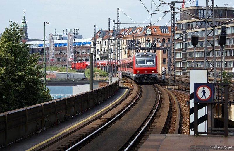 S-Bahn Ersatzverkehr - X Wagen aus dem Ruhrpott auf der Stadtbahn bei Einfahrt in den Bahnhof Berlin Alexanderplatz Richtung Ostbahnhof | geschoben von 143 913-2 02.08.2009