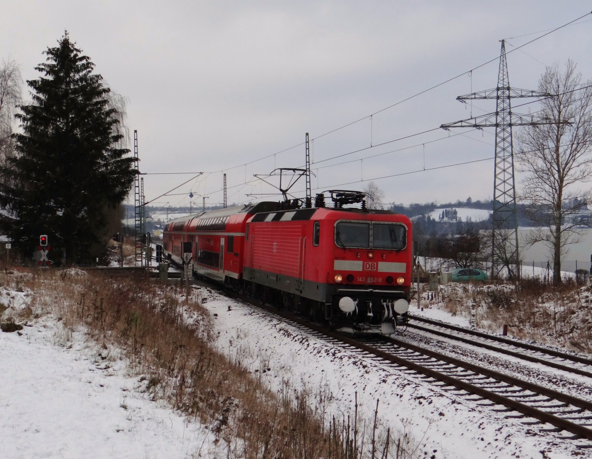 143 952-0 zu sehen am 24.11.15 mit einem RE von Hof Hbf nach Dresden Hbf kurz hinter Hof/Saale.