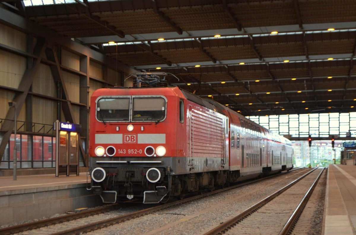 RE 3 Hof - Chemnitz - Dresden. Der letzte Tag unter DB Regie und mit BR 143. Schminke Lady 143 952-0 in Chemnitz Hbf 11.06.2016
