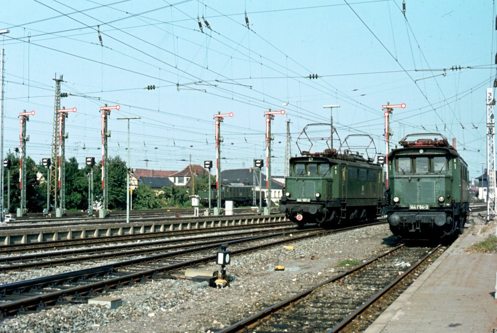 144 064-3 neben 144 097-3 Lichtenfels im August 1979, im Hintergrund noch eine 194