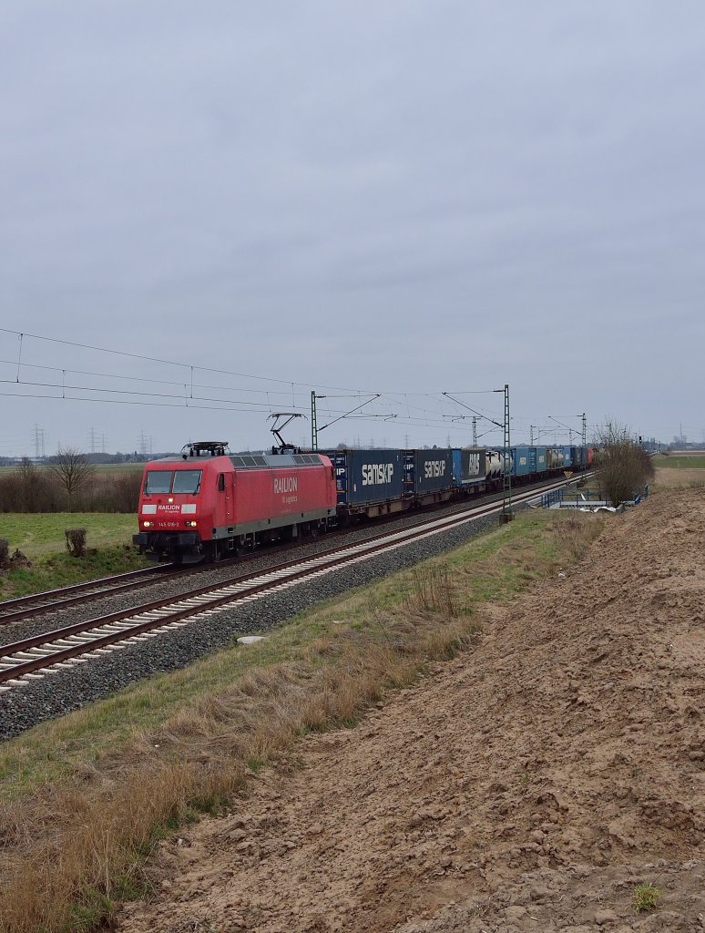Am Freitag den 5.4.2013 kommt die 145 016-2 mit ihrem Containerzug bei Allerheiligen über die  Kbs 495 gen Neuss gefahren.
