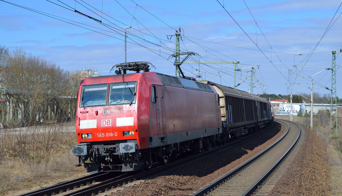 DB Cargo AG [D] mit "145 016-2" [NVR-Nummer: 91 80 6145 016-2 D-DB] und gemischtem Güterzug Richtung Rbf. Seddin am 02.03.21 Durchfahrt BF. Flughafen BER Terminal 5.