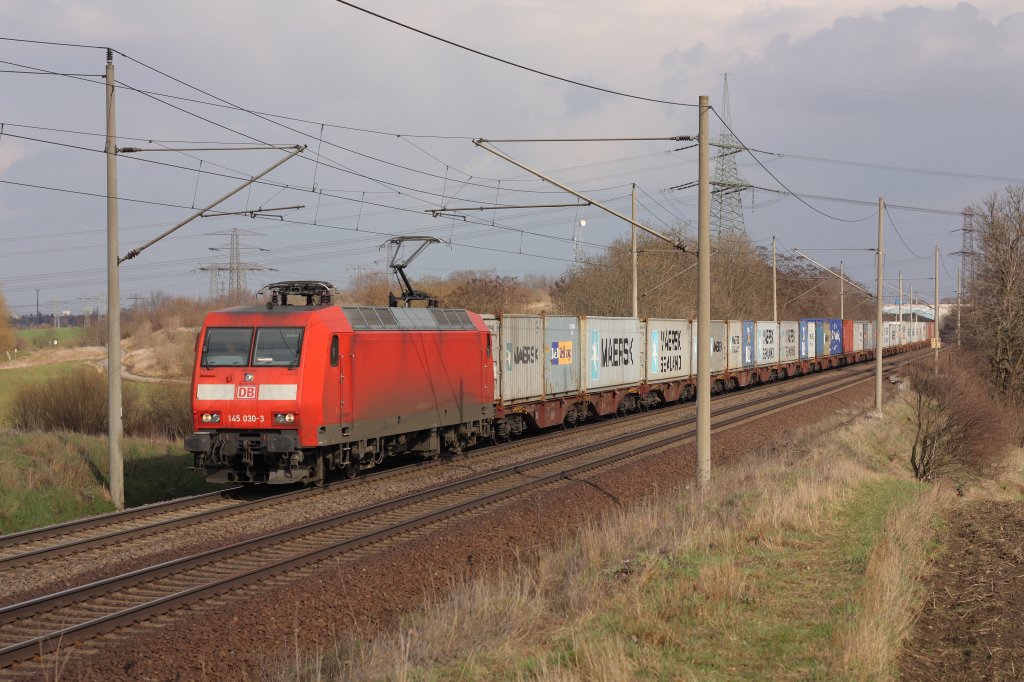 Wieder mal die üblichen Verdächtigen am Sonntag. Hier fährt 145 030-3 mit einem tschechischen Containerzug in Richtung Braunschweig. Fotografiert am 28.03.2010 in Magdeburg Diesdorf.