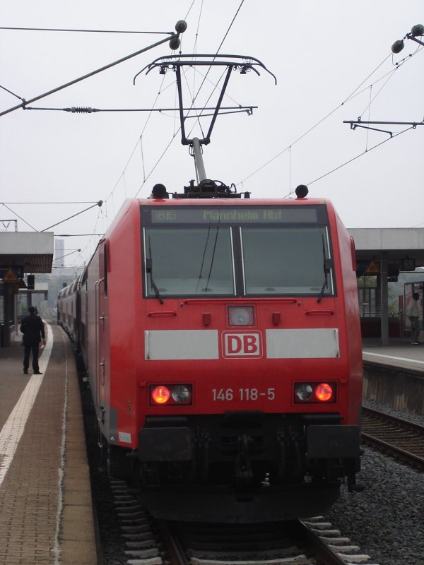 146 118-5 hält hier momentan in Niederrad und fährt gleich weiter nach Mannheim Hbf.(Herbst 2006)