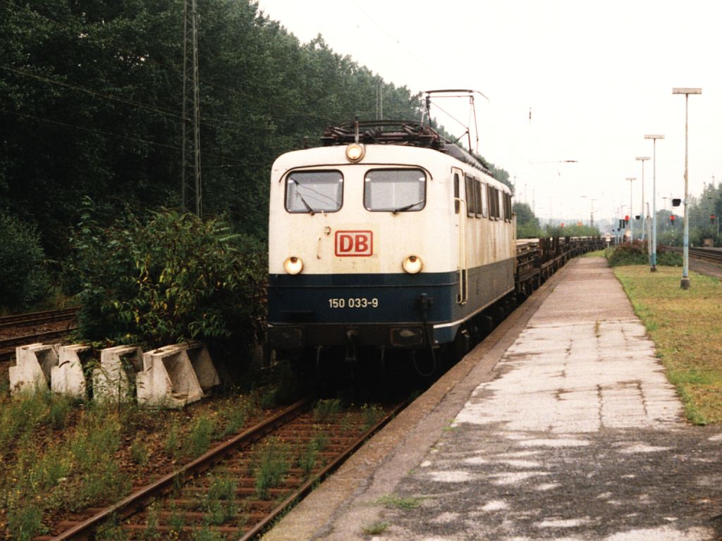 150 033-9 (Einfachlampen) mit einem Güterzug in die Richtung Krefeld auf Bahnhof Viersen am 26-8-1997. Bild und scan: Date Jan de Vries. Date Jan de Vries