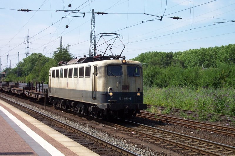 DB-Ellok 150 079-2 mit Güterzug im Bahnhof Essen-Altenessen. Das Bild zeigt die Lok bei einer ihrer letzten Fahrten in einem völlig runtergekommenen Zustand. Christian Ringat