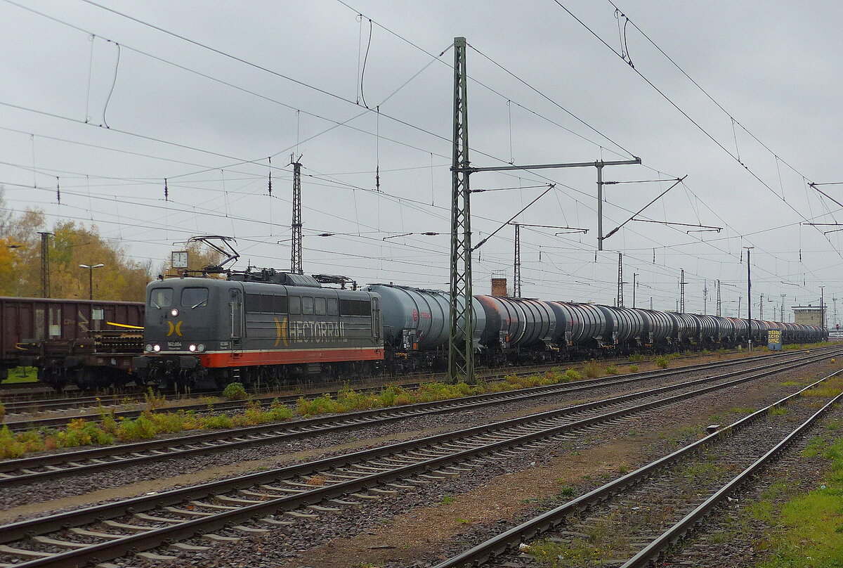 Hector Rail mit  162.004   Name:  Fitzcarraldo  (NVR-Nummer: 91 80 6 151 057-7 D-HCTOR) mit Kesselwagenzug am 27.10.20 Bf. Flughafen BER Terminal 5.