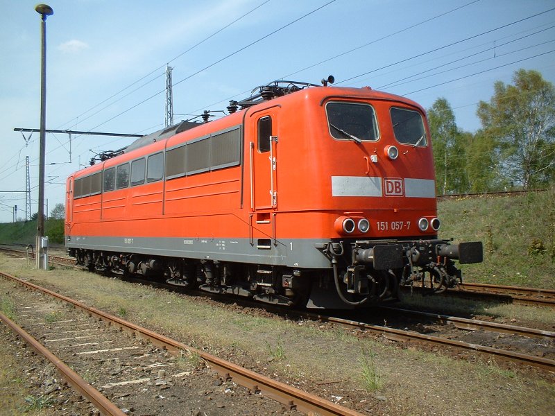 151 057-7 der Firma Hectorrail abgestellt in Coswig (Dresden)30.04.2018 15:43 Uhr.