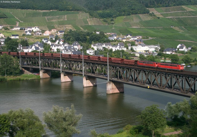 151 089-0 und*** mit einem Erzzug -> Trier auf der Moselbrücke in Bullay am 30.7.08