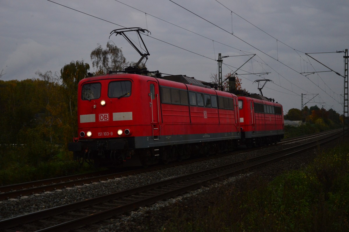 151 103-9 und 151 068-4 als Lokzug auf der Kbs 495 in Richtung Krefeld fahrend bei Kaarst Broicherseite.25.10.2015